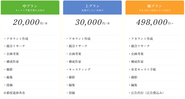 A.弊社は「構成キャスティング撮影編集投稿」までの各部門のプロが担当する点が強みです。