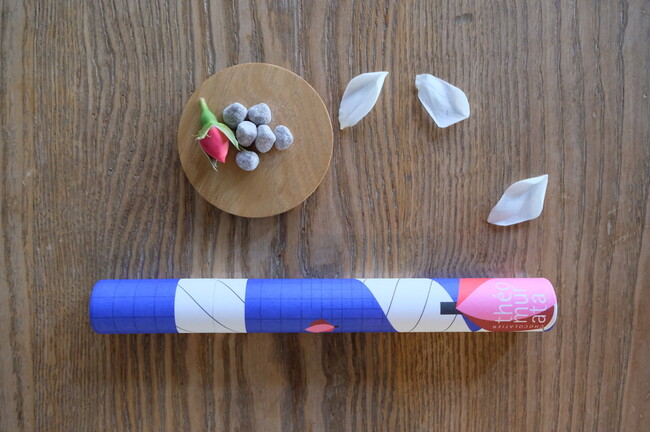 砂糖や保存料などを一切使用せず、イチジク本来の甘みが凝縮されたドライイチジクを、天然精油のローズのアロマを練りこんだビターチョコレートでコーティングした期間限定のビーンズショコラ。プチプチとしたイチジクの食感と、舌の上で溶けたときにほのかに香るローズの香り、そしてビターチョコレートという3つの要素が不思議とマッチしたショコラは、個性豊かな大人のショコラです。théomurataの職人がこだわり抜いたそのバランスはまさに”大人のショコラ”と呼ぶにふさわしく、贅沢なショコラが出来上がりました。