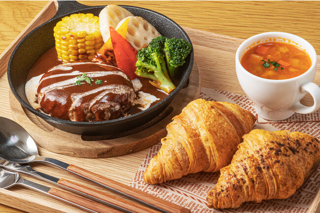 フードメニューは、リッツカールトン出身のフレンチシェフが、「ローストビーフ」「煮込みハンバーグ」「ペンネグラタン」などクロワッサンに合う洋食を考案。