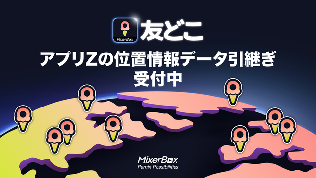 全世界で3億ダウンロードを超える、アメリカのSuper-Appsプラットフォーム「MixerBox」(日本法人であるミクサーボックス株式会社)は現在、Android/iOS対応の無料位置情報共有アプリ「友どこ」の日本語バージョンで、アプリZのデータ引継ぎの受付をすでに開始しています。