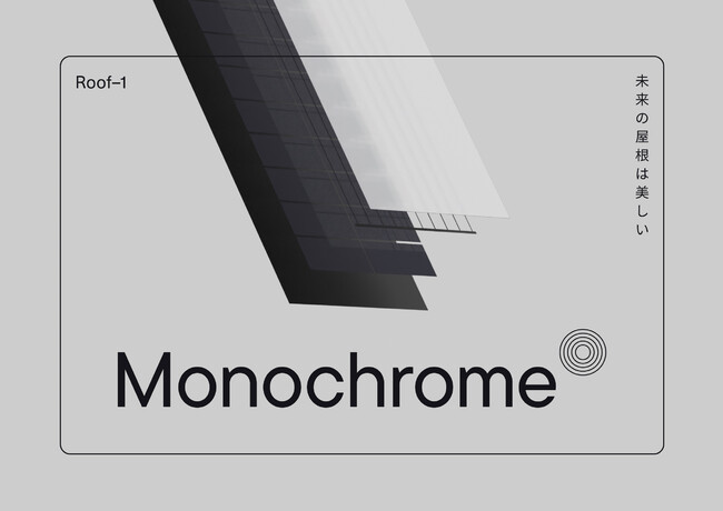 モノクロームが開発したRoof-1は、独自の特殊加工により太陽光発電モジュール全体の色を黒色とし、また黒色の金属屋根と一体化させた、太陽光パネルとわからないような美しい見た目の屋根材です。Roof-1は、意匠権を取得しています。