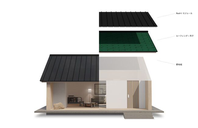 また、Roof-1は屋根と太陽光パネルを同時に施工できるため、通常の独立型太陽光パネルを屋根の上に設置する場合と比較して、新築時には施工費が安くなることもその特徴です。本展示会では、ブース内に小型の屋根を設け、Roof-1の実物を設置した状態での展示をいたします。