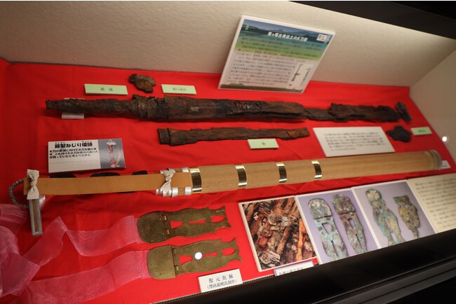 令和4年に発掘された「石見(いわみ)型木製はにわ」の実物大写真が展示されています。