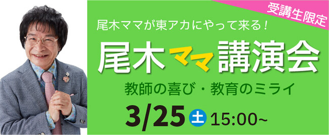教員採用試験に向けた講座運営の東京アカデミーが弊社講座受講生対象に、尾木直樹氏(尾木ママ)を招いて講演会を行います。