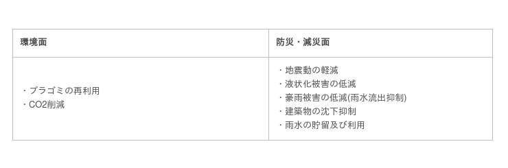 効果:不同沈下対策、液状化対策、豪雨対策、地震対策