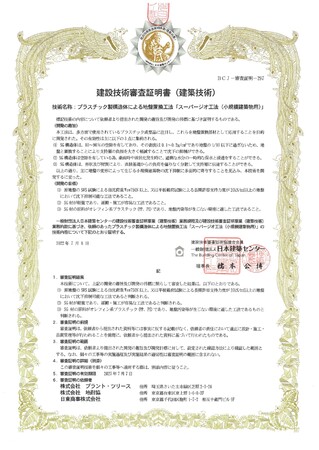 スーパージオ工法は、幅広い条件下で建築物の不同沈下を抑制するもので、2022年7月には一般財団法人日本建築センターの認定も得ています。