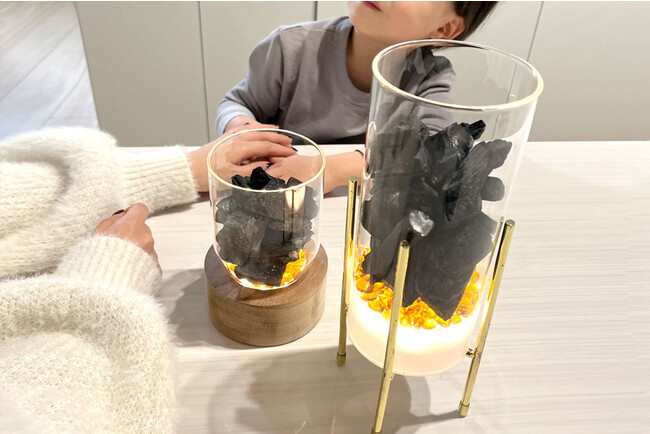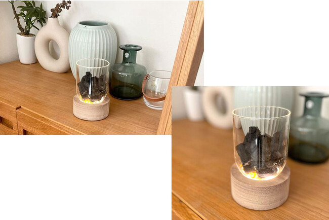 お子様やペットのいるご家庭でも火を使わずに備長炭の暖かみを室内でも楽しめるインテリアライト。