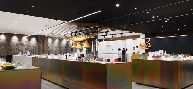 2022年12月1日、名鉄百貨店本店メンズ館の1Fにオープンした「名鉄商店」の内装に、当社の注連縄を採用していただきました。また、名鉄百貨店の水引ロゴをしめ縄で作らせていただきました。