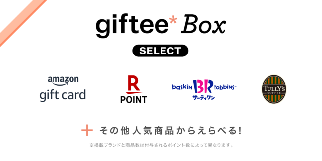 ・ラインナップの中から好きな商品と交換できる、giftee Box select 500円分を付与いたします。