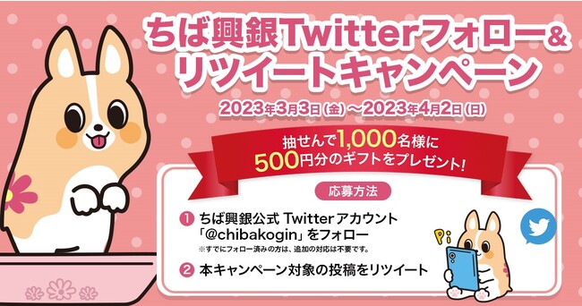 2023年3月3日(金)にTwitter(ツイッター)アカウントを開設いたします。また、Twitterアカウントの開設を記念し、「ちば興銀Twitterフォロー&リツイートキャンペーン」を実施いたします。