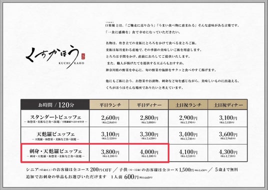 (lunch:税込4180円、dinner:税込4400円)の特別価格でお楽しみいただけます。