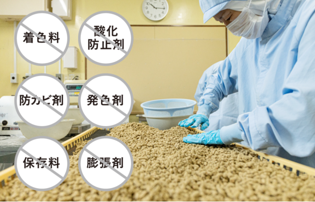 着色料や香料はもちろん、天然の酸化防止剤や増粘剤も一切添加せず、人間が食べることができる品質水準をクリアした原材料のみで作っています。健康づくりを目指すからこそ、「安心できる安全品質」「毎日食べてくれる素材のおいしさ」にこだわりました。
