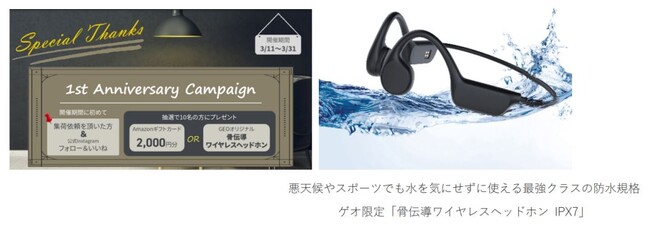 ~ゲオ限定「骨伝導ワイヤレスヘッドホン IPX7(RWC-BCH X7 BK)」 または「Amazon ギフトカード 2,000 円分」を抽選で 10 人にプレゼント~