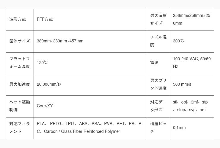 P1Pは最高速度500 mm/s、最大加速度20,000mm/s²という驚異的な性能を発揮します。さらに、印刷を始めてから最高速度に達するまでの時間はわずか0.025秒と非常に短く、すぐに印刷が行えます。