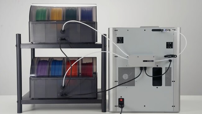 防湿システムは、湿度センサー、乾燥剤パケット、シリコンラバーOリングを活用し、フィラメントを湿気から保護します。湿気が一定以上に上昇すると、システムが自動的にユーザーに乾燥剤の交換をリマインドします。これにより、フィラメントの品質を維持し、3Dプリントの精度を向上させます。