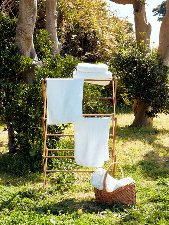 LANDHAUSのシグネチャーアイテムのタオルは、見た目が美しいだけでなく、思わず顔をうずめたくなる贅沢なボリュームと、驚くほどの軽さが魅力。洗いざらしのコットンの清々しい風合いをそのままに、たっぷり空気を含んだドライ感のある柔らかさは、唯一無二の肌触りです。