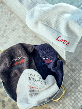 シグネチャーアイテムのタオルは、見た目が美しいだけでなく、思わず顔をうずめたくなる贅沢なボリュームと、驚くほどの軽さが魅力。洗いざらしのコットンの清々しい風合いをそのままに、たっぷり空気を含んだドライ感のある柔らかさは、唯一無二の肌触りです。