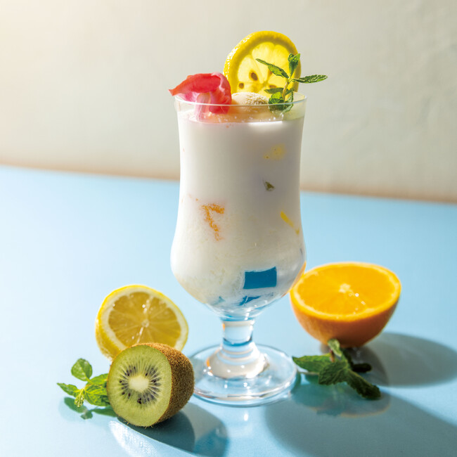 商品説明:レモネードミルクをベースにオレンジ、キウイ等のフルーツやゼリーが入ったドリンク