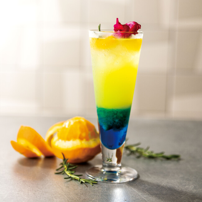 モクテルとは英語の「Mock(似せた、真似た)」と「Cocktail(カクテル)」を合わせて作られた言葉です。イギリスで生まれた造語ですが、現在は多くの国で親しまれています。フルーツカクテルをイメージしたお洒落且つ色鮮やかなドリンクで、ちょっとした特別な日でもお楽しみいただける商品です。