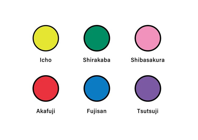 そして富士の青、白樺の緑、銀杏の黄、赤富士の赤、芝桜の桃、つつじの紫の6色を起点とし、決して1色では表すことのできない天気や時間・季節によって変化する自然の瞬間を切り取るようデザインしました。