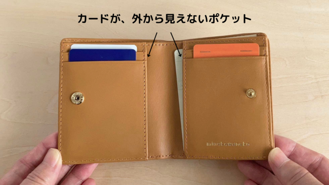 2.コンパクトに持て、使いやすい仕様の二つ折り財布