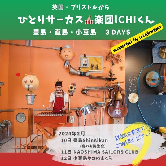 英国ブリストル在住の音楽発明家のICHIさんのライブパフォーマンスを、2024年2月11日(日)に、一般社団法人 キッズポート(香川県・直島 代表理事 山岸紗恵)が運営する子ども第三の居場所事業「NAOSHIMA SAILORS CLUB」にて開催します。独創的な手作りの楽器と沢山の音の仕掛けで、予測不可能な音楽の大冒険を楽しみましょう!子どもから大人まで、誰もがICHIさんの世界に心躍ること間違いなし。この機会、お見逃しなく!! 多様なヒトモノコトが行き交う場となることを目指し、冒険とソウゾウを愉しむ当団体にとって、ICHIさんのご来島はとても嬉しいことです。多くの子どもたちに、ICHIさんの世界を楽しんでいただけるよう、高校生以下はチケット無料となっています。