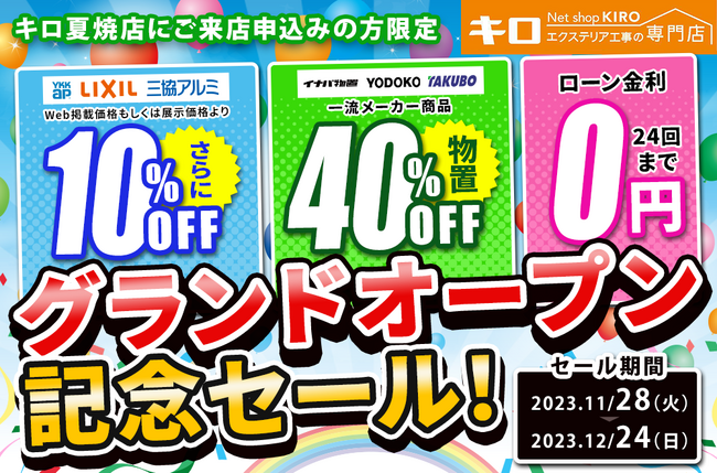 【グランドオープン記念セール開催中!リアル店舗「キロ夏焼店」がオープン!!】