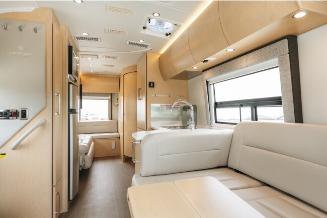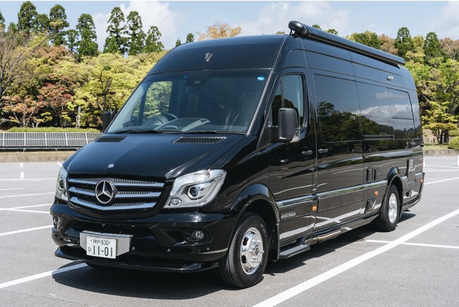 日本で1台しかないグジュアリーな大型キャンピングカーの「SERENITY」は、カナダのLEISURE社が製作した最新車両。ベース車両は海外でも大人気のメルセデスベンツのスプリンター仕様で、広いキッチンスペース、ベッド、リクライニングソファも完備、お一人様からご家族・ペットも同乗しながら車中泊を楽しむことが可能。