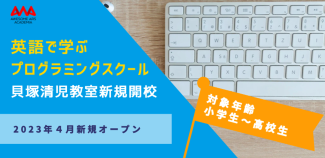 株式会社Awesome Ars Academia(オウサムアルスアカデミア)(本社:東京都渋谷区、代表取締役:西出大介)は、「プログラミング」を学びながら、「直接外国人講師から英語で学び、聞き、話す」をコンセプトに大阪府貝塚市にAwesome Ars Academia国内初のリアル校「貝塚清児教室」を4月に開校します。