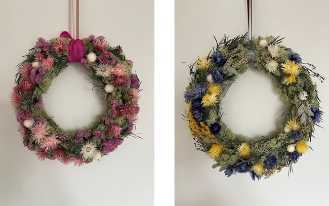 小さな頃の懐かしい風景を思わせるやさしい草花をちりばめたフラワーリースに感謝の思いをのせて、大切なおかあさまへとあなたの大切な心ごとお届けいたします。