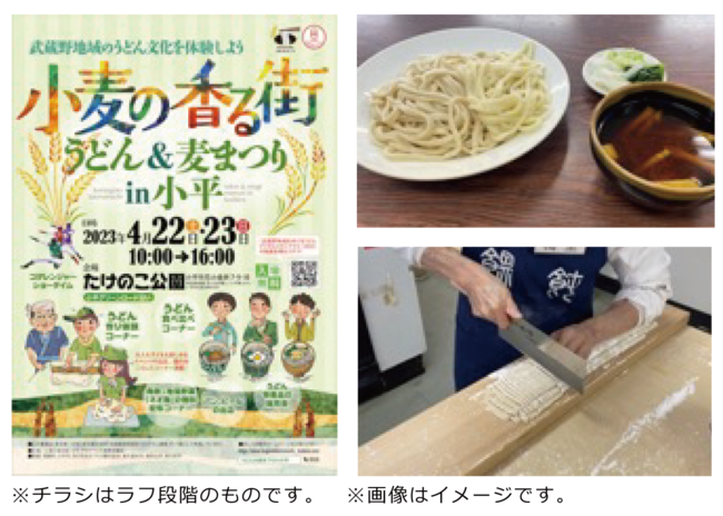 「小麦の香る街 小平」PRイベント連携協議会は、小平市 たけのこ公園で4月22日(土)~4月23日(日)の二日間、「武蔵野うどん」と「小麦」をテーマに、小平市・東村山市・東大和市・清瀬市・東久留米市・所沢市の地域と連携し、「武蔵野うどん」と「小麦」を美味しく楽しく味わうことで、地域の文化を知ることのできるイベントを目指し開催いたします。