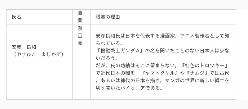 井上靖記念文化賞特別賞:安彦 良和 さん