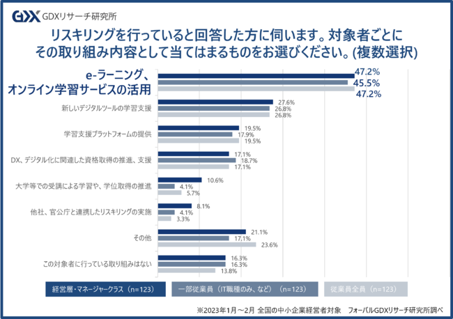 その他のリスキリング施策は3割以下に留まっているという結果に