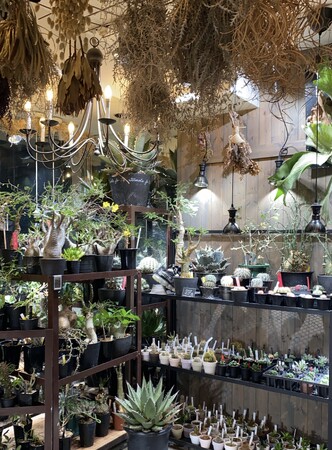 そして、アンティークの横に相性抜群なのが多肉植物。肉厚な茎や葉が特徴で、その形や色の可愛らしさが幅広い世代から根強い人気がある。保水性が高く、初心者にも育てやすいため、インテリアのひとつとして取り扱う店は少なくない。