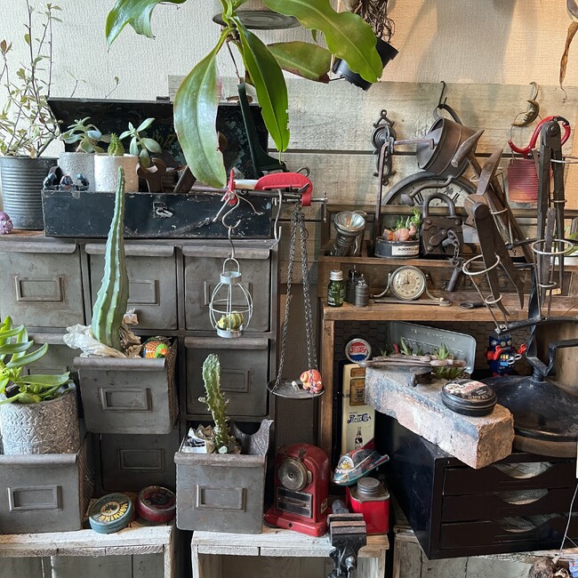 『Old Treasure』には、アンティークやビンテージの家具や古道具、昭和レトロな雑貨や玩具、古着を扱う店と、多肉植物を販売する店、飲食店が集まる。その総数は56店。