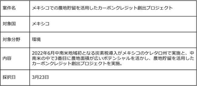 ・メキシコでの農地貯留を活用したカーボンクレジット創出プロジェクトとして