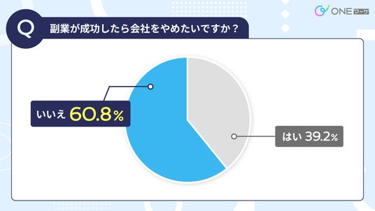 「副業が成功したら会社をやめたいですか?」という設問では、「副業が成功しても本業を辞めない」と答えた人が全体の60.8%という結果になり、「副業が成功したら本業を辞めたい」と答えた人を上回る結果になりました。