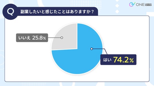 「副業したいと感じたことはありますか?」という設問に、20代(男女を問わず)のうち、74.2%が「副業したい」と感じたことがあると回答しており、副業への関心の高さが伺えます。