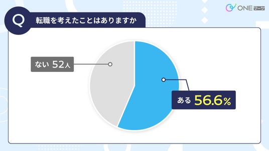 「転職を考えたことはありますか?」という設問では、半数以上の方(56.6%)が「転職を考えたことがある」と回答しました。