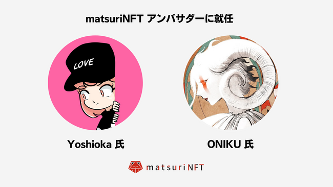 株式会社 RAMPAGE(代表:平石 尚)は、ファンとアーティストのクリエイティブな交差点となる、新しい価値を生むエンターテインメントNFTマーケット「matsuriNFT(マツリエヌエフティ―)」を2023年6月30日よりβ版の運営開始を発表しましたが、先日プロデューサーに就任したカズシ フジイ氏・プラットフォーマーである平石ファウンダーの呼びかけにより、アンバサダーとして"Yoshioka"氏と"ONIKU"氏両名が就任することが発表されました。
