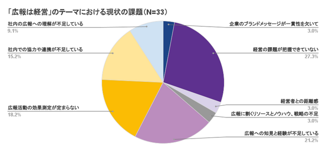 経営機能としての広報を目指す担当者の一番の課題は「経営の課題が把握できていない」が27.3%で最多