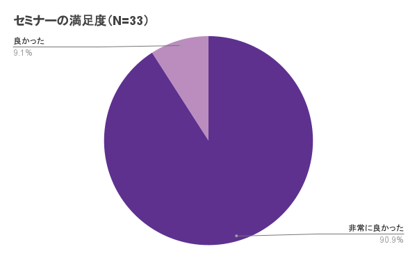 セミナー参加時の達成度は「非常に良かった」が90.9%、「良かった」9.1%で、全体として「良かった」以上が100%という結果となりました。