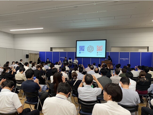 会場には定員100名を超えるお客様がご来場され、急遽座席数を増やして対応する人気ぶりとなりました。参加者は、ChatGPTの活用事例についてメモを取りながら聴講されていました。
