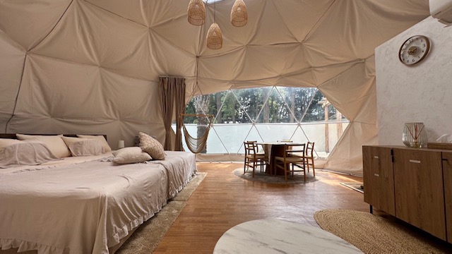 特にこだわったポイントは、窮屈さや圧迫感を与えずにプライベート感をどう演出するかという所です。グランピングエリアに一歩踏み入れた瞬間に広がる別世界を是非お楽しみください。