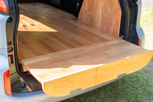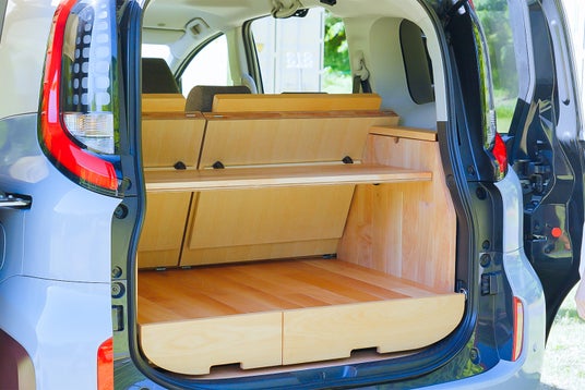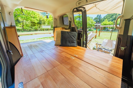 日常の車としての機能は損なわず、遊ぶときにはバンライフを楽しめるモード切り替えの仕組みは、特許出願中です。(特願2024-79787)
