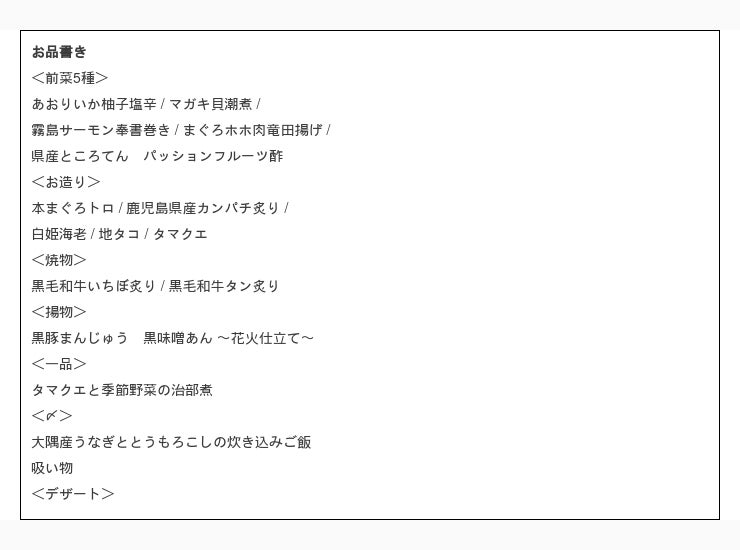 鹿児島の焼酎と一緒に、鹿児島の食を楽しむ一夜をご堪能ください。