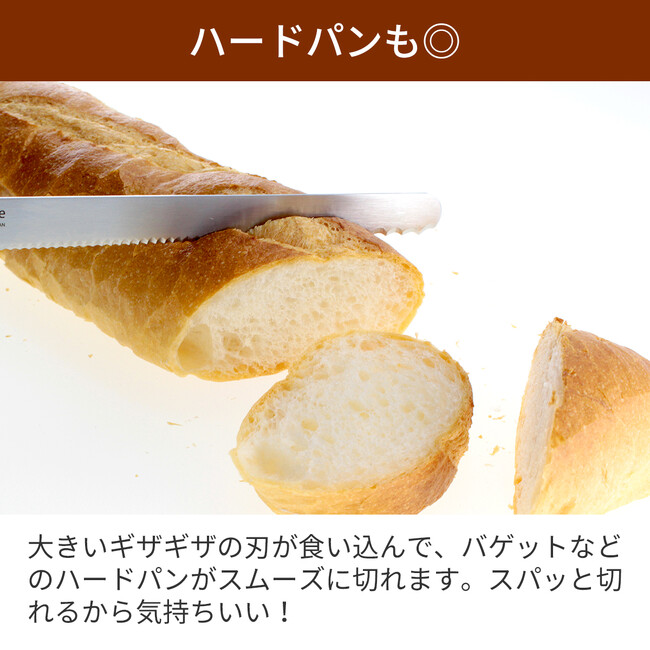 ・2種の波刃を採用することで、焼きたてパンや柔らかいケーキも、バゲットなどのハードなパンもスパッと切りやすいです。