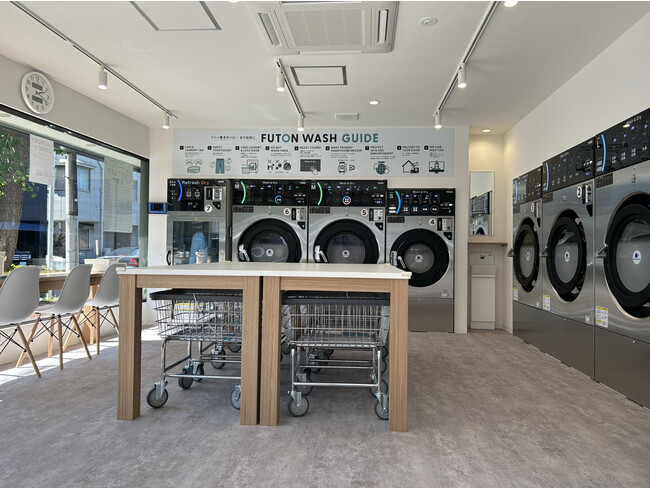 「FUTON WASH」の1号店となる自由が丘店は、洗練された街「自由ヶ丘エリア」に清潔感ある心地良い空間、セルフコインランドリーから日常の洗濯・フトンのおまかせサービスや便利なデリバリーサービスまでエレガントで洗練された洗濯サービスを提供。今後は、インバウンド需要や長期出張ビジネスユーザー向けにFUTON WASHを広めていき、3年後には首都圏を中心に約50店舗の店舗展開を目指しています。