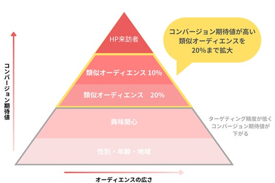 11%から20%までは1%単位でオーディエンスを調整できるため、広告主のニーズに合わせたCPAの最適化と配信拡大の微調整が可能です。
