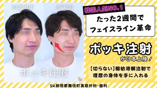 SK新宿歌舞伎町美容外科・歯科で提供する【ポッキ注射(脂肪溶解注射)】は、自己流では落としにくい部分脂肪にアプローチできる医療ダイエットです。気になる部位にピンポイントで効果を期待でき、短期間で理想のラインに近づけることが可能。